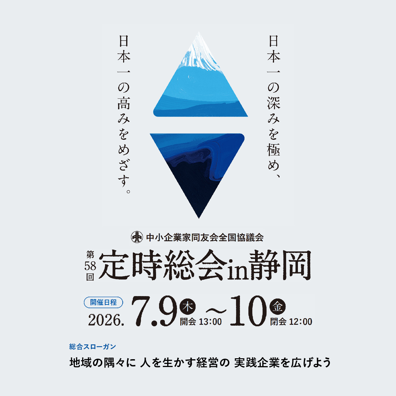 イベント・行事案内 中同協の取り組み 全国同友会マップ 政策・調査 同友会ニュース 2026年4月8日 お知らせ 【26.04.08】DOR157号(2026年1~3月期景況調査)速報を発表しました 2026年3月25日 見解・談話 【26.3.24】日本労働組合総連合会(連合)との共同談話を発表 2026年3月6日 見解・談話 【26.3.6】アメリカ・イスラエルによるイラン攻撃についての会長談話を発表 2026年2月10日 お知らせ 【26.02.10】『企業環境研究年報』第30号を発行しました 2026年2月2日 活動報告 【26.2.2】衆議院選挙に向けた各党の中小企業政策に関するアンケートの回答結果について MORE トピックス 2026年4月22日 統計データを見る ナフサの関連製品を見る サプライショックの可能性も 2026年4月22日 政策活動 オール埼玉で進める価格転嫁の取り組み(埼玉) 2026年4月22日 共生社会の実現に向けた取り組み 新時代を切り拓く中小企業環境変化を追い風に変える経営戦略~多様な人材と〝つながり〞が生む組織の成長~(株)ミカド交設 代表取締役 吉野 一彦氏(山口) 2026年4月9日 会員の輪を広げる 3年連続の過去最高会勢でスタート 中同協5万名推進・組織強化本部長/ 中同協幹事長 中山 英敬 2026年4月9日 会員の輪を広げる 2030年ビジョン達成に向けて増強運動を推進(神奈川) MORE 経営実践事例を紹介する中同協発行のメールマガジン