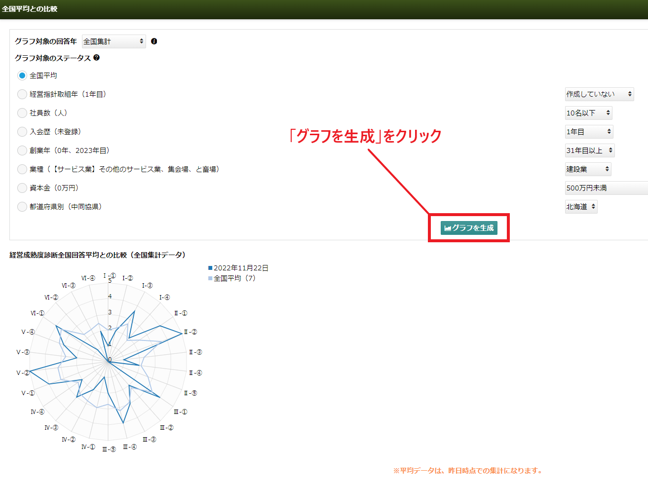(4)回答年を選択します。 (5)選択したら、下の「グラフを生成する」をクリックします。 |