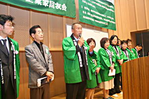 その後、支部長に就任した青葉建設(株)の千葉博志氏が活動方針を発表。(1)会員同士の信頼関係を前提としたネットワークづくりを通してさまざまな事業の可能性を探り、中小企業ならではの高い技術力やきめ細かなサービス力、あるいは蓄積された経験を共有し、新事業を創造することに力を入れる、(2)例会での学び合いを通して、コミュニケーション能力を磨き、また例会以外のミニ勉強会も開催し経営に必要な基礎知識を学ぶ、(3)地域行事への参加などを通して地域と企業のつながりをつくる、の3点を重点に、活動を進めていくことを確認しました。