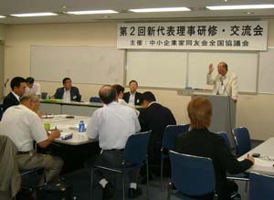 「同友会代表役員の役割を明確にしよう」と、昨年から始まった新代表理事研修・交流会。今年も総会終了後に開かれ、各同友会の新代表理事を中心に26名が参加しました。