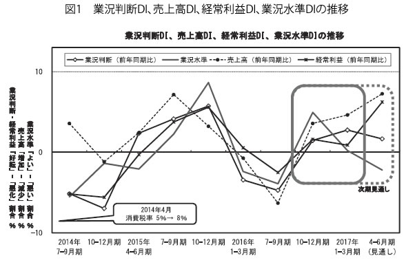 世界経済の持ち直しで資源価格が再び上昇を始めたところに、トランプ大統領の就任で円安・ドル高の流れが重なりました。4月は価格改訂、値上げの時期でもあることから、価格転嫁が難しい中小企業は原材料高の波をかぶり、足元の景気は「花冷え」のように悪化の傾向を示す可能性をはらんでいます。