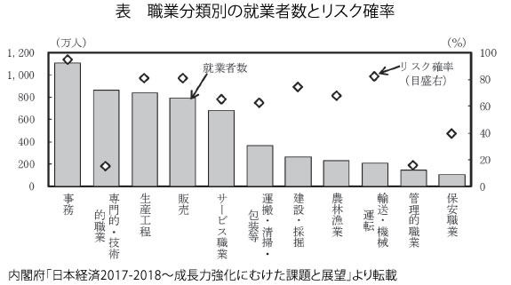 2018年1月に内閣府は「日本経済2017-2018~成長力強化にむけた課題と展望」を発表。AIなどのテクノロジーの発達による雇用への影響を考察しています。