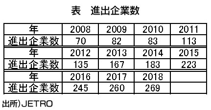 前回、バングラデシュでは大企業の勃興が見られることをお伝えしました。今回は日系企業の状況についてです。ジェトロダッカ事務所によると、進出日本企業数は2008年70社から2018年269社へ増加し、今後一層の増加が見込まれます(表)。今回、日系企業2社を訪問しました。