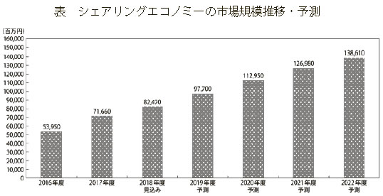 このICTの進展によりシェアリングエコノミーの市場規模は2016年度には540億円だったものが、2022年度には1,386億円に拡大する予測もあり、企業としてはチャンスとともに対策・対応を迫られる可能性もあります(表)。
